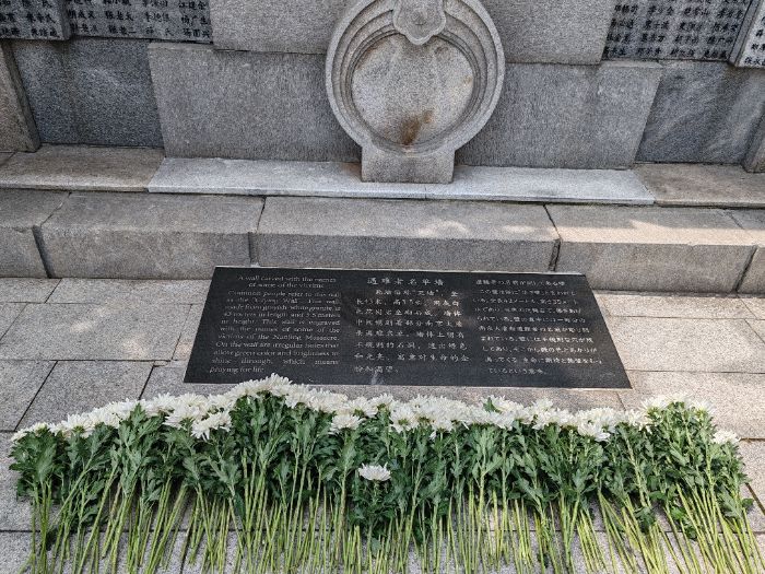 紀念館和平廣場設置了“獻菊緬懷”區,游客可通過自主捐款獲取素白菊花,所籌善款將用于紀念館史料修復與幸存者關懷項目。這無聲的倡議,意外收獲了最動人的回應:白發蒼蒼的老人顫巍巍地投幣取花,將菊花輕放在紀念碑前,深深鞠躬的背影里,藏著跨越半個世紀的思念;年輕父母牽著孩子的手,教他把硬幣投入捐款箱,再親手接過菊花放下,低聲說 “要記住,這是用生命換來的和平”;還有外國游客用生硬的中文問 “捐款在哪里”,鞠躬時,胸前的相機鏡頭對著花海,仿佛要將這份跨越國界的緬懷永遠定格。