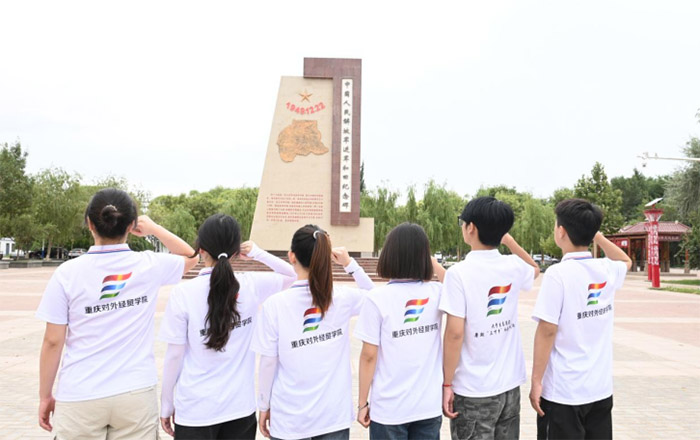 圖為實踐團成員在紀念碑前宣誓
