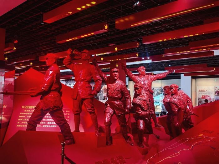 講到“半截皮帶”,拆解“斷糧保留口糧、刻‘長征記’作信物”的細節,配合動畫演示,讓游客秒懂“吃皮帶也要革命到底”的壯烈;講述“女戰士縫補傷員衣物”,結合展柜里的“粗布補丁”,還原“寒夜里,縫補聲和槍炮聲都是希望”的場景。有孩子提問“紅軍叔叔不怕疼嗎”,指向“西路軍精神”展板回應,“因為他們心里有比疼更重要的東西,叫信仰,為了讓更多人過好日子,再難也不怕”。