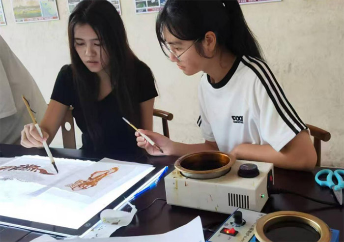 圖三為廣師大學子體驗蠟染。李淑銀攝