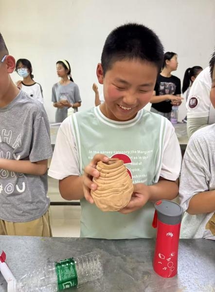 活動的第一部分,孩子們來到農(nóng)莊的陶瓷工坊,親身體驗(yàn)陶瓷的制作過程。濕潤的陶土成為打開感知之門的鑰匙,孩子們在實(shí)踐團(tuán)成員的指導(dǎo)下,捏制泥土,感受到創(chuàng)作的樂趣。通過捏制陶器,孩子們不僅學(xué)到了基本的手工藝技巧,還激發(fā)了他們的創(chuàng)造力和想象力。每個(gè)孩子捏出的陶器都別具一格,象征著他們在創(chuàng)造中發(fā)現(xiàn)自我,展現(xiàn)潛力。孩子們在作品完成后展現(xiàn)出極大的成就感,很多孩子表示希望將來能有更多機(jī)會繼續(xù)進(jìn)行陶瓷創(chuàng)作。