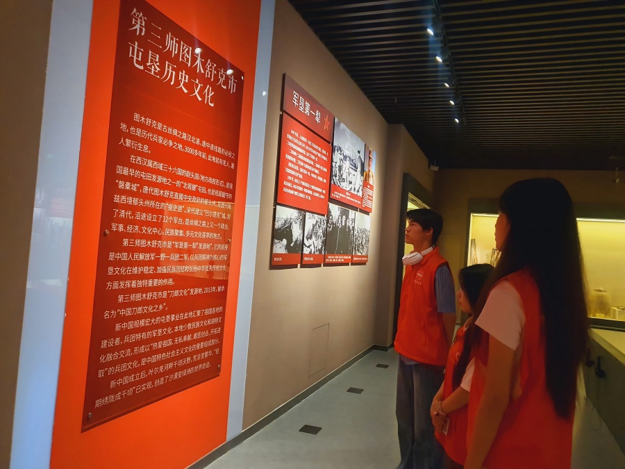 在圖木舒克博物館的參觀中,除了兩漢屯墾戍邊的重要展區(qū),革命戰(zhàn)爭時期與和平年代的戍邊印記同樣深深吸引著塔里木大學(xué) “衛(wèi)國戍邊” 暑期三下鄉(xiāng)實踐團隊的同學(xué)們,讓他們在不同歷史階段的故事中,全方位觸摸戍邊精神的傳承脈絡(luò)。