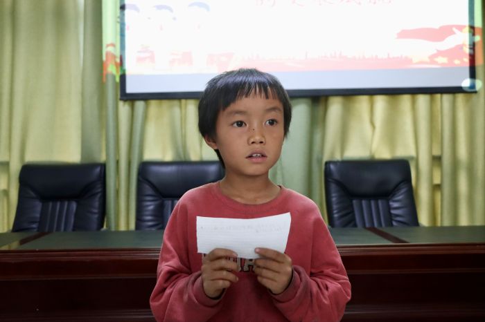 宣講結束后,實踐隊再次組織留守兒童撰寫“給革命先烈的一封信”,并幫助他們讀給大家聽。孩子們稚嫩的聲音飽含著對革命先烈的敬仰與感恩,在這個過程中,他們厚植了家國情懷,增強了對家鄉(xiāng)的認同感與歸屬感。