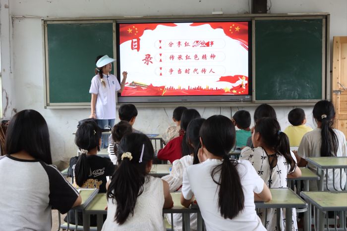 (圖為實踐隊為合興村孩子們普及紅色知識的場景。勾興敏供圖)