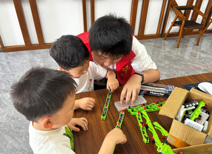 實驗里的科學啟蒙 活動期間,志愿服務隊精心策劃芯片知識科普與實驗展示環節。隊員們化身“科技講師”,用貼近孩子認知的通俗語言,拆解芯片基礎認知、功能作用與材料構成等知識。借助面包板搭建電路,配合邏輯門知識演示,將抽象原理可視化——把“與門”類比成“開門需滿足雙條件”,“或門”比作“開電視滿足單一條件即可”,生動類比讓晦澀知識變得直觀易懂,成功激發孩子們對芯片科技的好奇與探索欲,在幼小的心靈里播下科技探索的種子。
