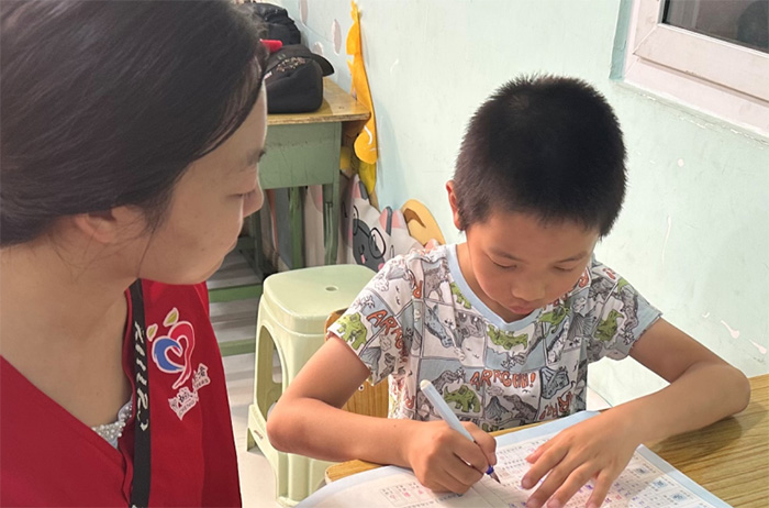 課業(yè)幫扶,夯實基礎 團隊將學業(yè)支持作為首要任務。成員們根據學生年級和個體差異,分小組進行“一對一”或“一對多”的專項作業(yè)輔導。團隊耐心講解知識點、解答疑難、指導學習方法,幫助孩子們完成暑期作業(yè)、鞏固學科基礎,為新學期做好準備。