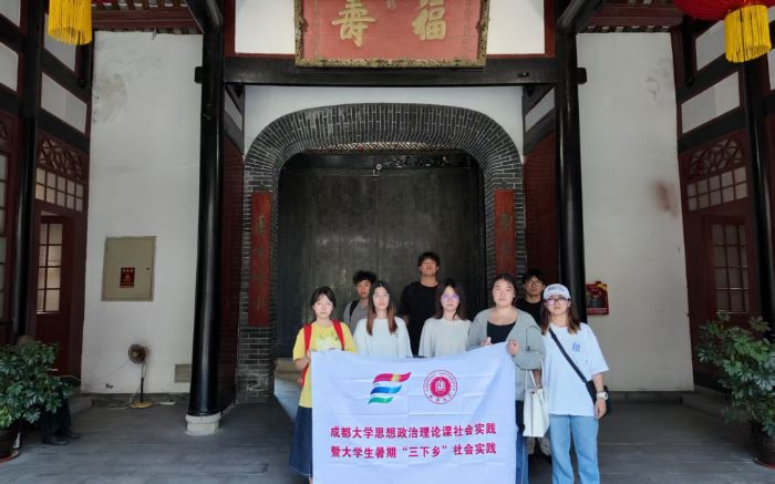 圖為實踐團隊在崇州市博物館門口的合影。韓姚秋晨攝。 而在當地小學開展的“紅色記憶”問卷調查中,孩子們用鉛筆涂寫的稚嫩答案被逐一拍照存檔——這些充滿童趣的手寫反饋,將成為團隊后續學習情感分析算法時的珍貴訓練素材。