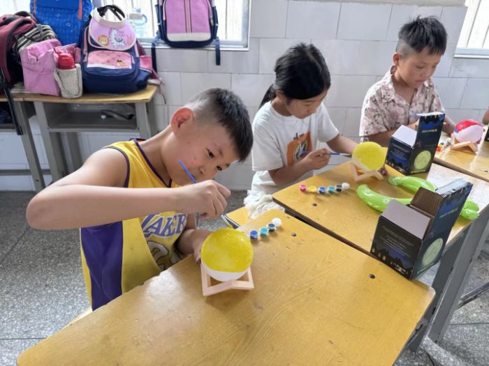 告別紀(jì)念館,服務(wù)隊轉(zhuǎn)身走進(jìn)鄉(xiāng)鎮(zhèn)小學(xué),為三年級孩子打造“情緒魔法課堂”。借助趣味情景劇、情緒卡片游戲,隊員們把情緒識別、調(diào)節(jié)技巧變成互動體驗,讓孩子們在歡笑中掌握情緒管理“密鑰” 。課堂尾聲,“小月亮手作”環(huán)節(jié)溫馨開啟,孩子們用顏料與創(chuàng)意繪制專屬作品,在藝術(shù)創(chuàng)作里釋放童真、疏解壓力,讓積極心態(tài)伴隨成長。