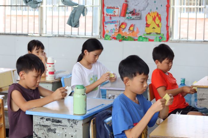 活動注重互動性與參與感。宣講人組織了“勝利路線圖”拼圖環節,學生們動手拼接,直觀感受抗戰歷程。在“如果王二小來到芷江”創意繪畫環節,學生們發揮想象力進行創作。活動最后,全體學生參與了手工制作象征和平的五角星活動,并齊聲誦讀。