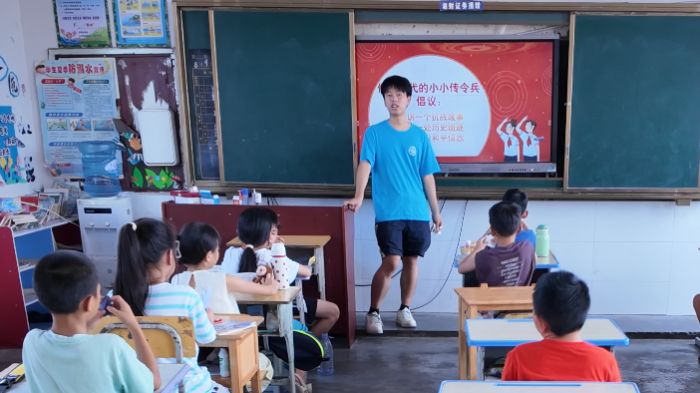 (通訊員 韓新悅 楊浩宇)2025年8月10日,中南大學守望侗鄉支教團的“薪火之聲”理論普及宣講成員在湖南省懷化市芷江侗族自治縣新店坪鎮小學,舉辦了一場以“放牛娃的紅星照亮勝利路——從王二小到芷江受降”主題的宣講活動。