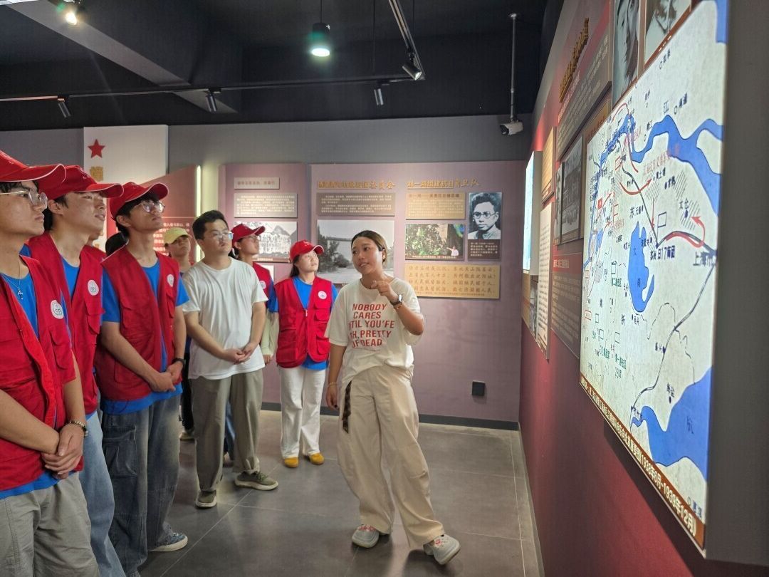 圖為華園藥院青年實踐團隊成員前往當地紅色文化基地博望區百峰抗日烽火陳列館開展活動。徐晨馨 供圖