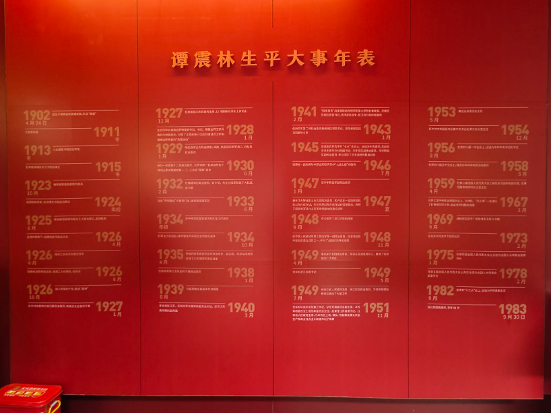 圖為展廳中譚震林生平大事年表 張盧盼攝