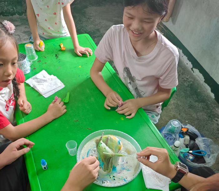 在地深耕:緊扣鄉村生態痛點 《污水處理大師》課程精準錨定當地水資源保護需求。吉安鄉村水資源珍貴,但孩童對水污染成因與治理認知空白。支教團結合在地實際,搭建由砂石、活性炭、棉花構成的簡易過濾裝置,將混有泥沙、顏料的模擬污水注入后,清澈液體逐層滲出。“污水真的變干凈了!”孩子們凝視過濾后的清水,眼神中既有驚喜,更藏著對家鄉河道的關切。