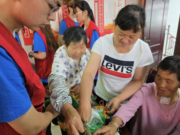 圖為“華園藥院青年”實踐團隊帶領村民包香囊。王慧娟 供圖