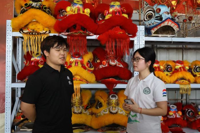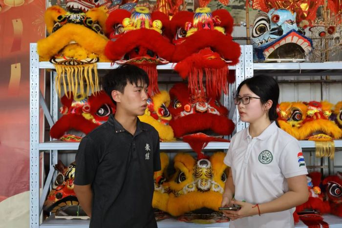 為探尋英歌舞這一潮汕非遺的傳承密碼,揭陽市揭西縣塔頭鎮團委書記郭桂玲、塔頭鎮文文服務中心沈仲喜攜莞韻留香突擊隊走進揭陽市吳東松獅藝文化促進會。在這里,我們觀看并了解到英歌舞的起源、融合武術戲劇的歷史脈絡,見證機構堅守傳承的努力,借參觀表演、對話傳承者,解碼傳統文化傳承的活力與希望。