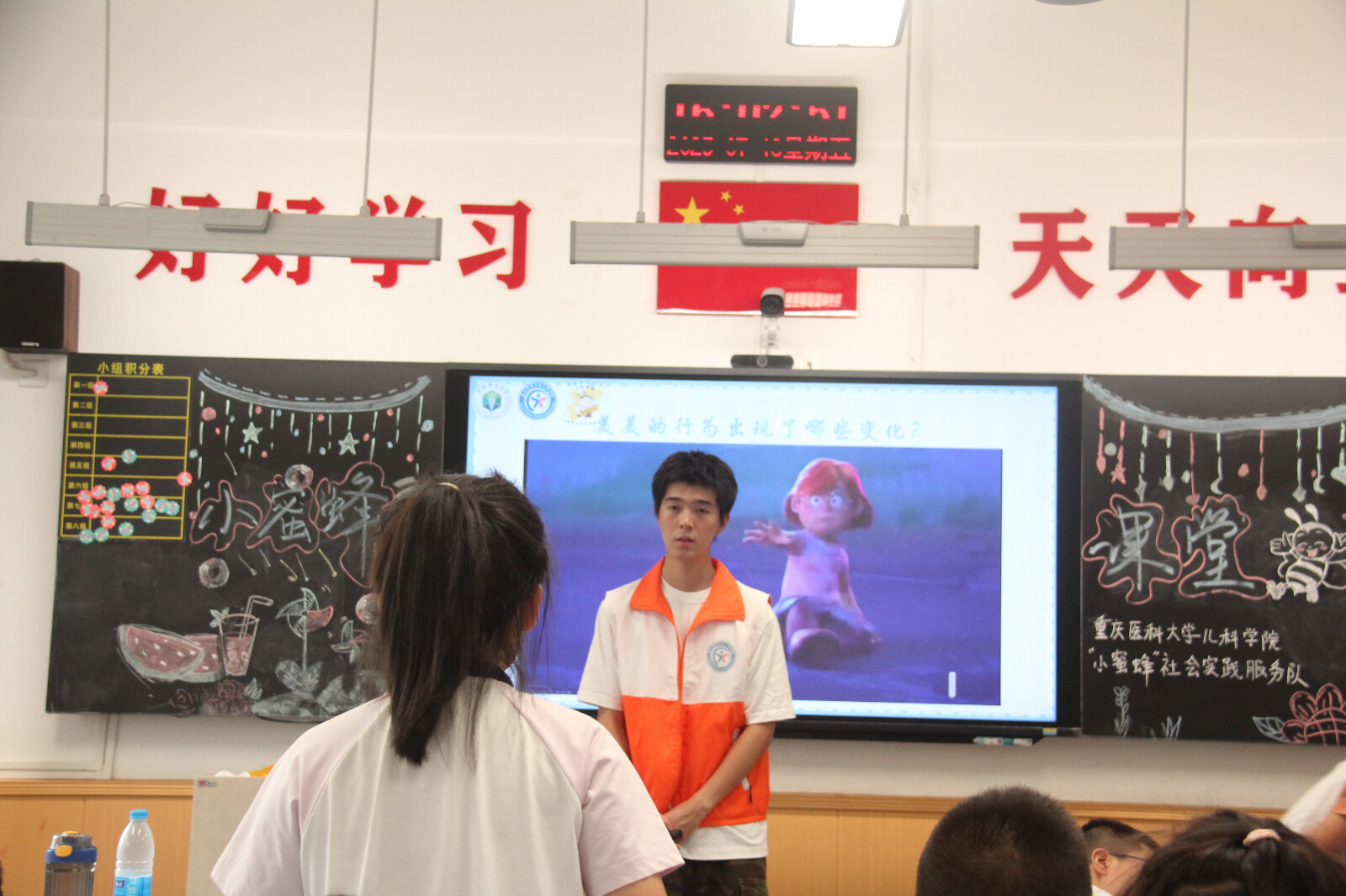 踐隊(duì)隊(duì)員給孩子們授課 何文靜攝)
