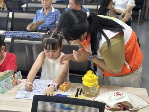 踐隊(duì)隊(duì)員輔助孩子們完成問卷)