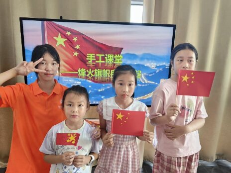 圖為小朋友制作小紅旗的特寫照片。何艷飄/攝