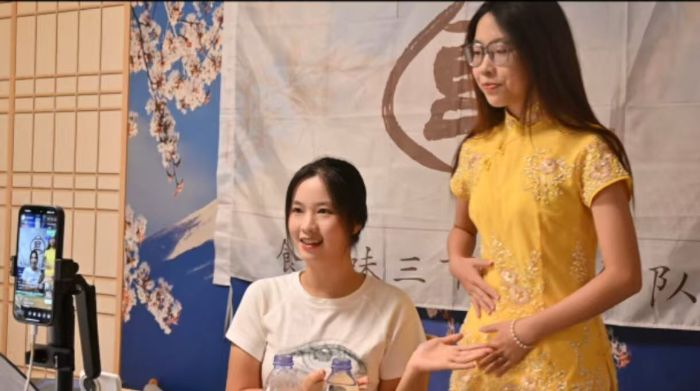 (圖為實踐團成員直播展示“學佬衫”李智鈺 攝)