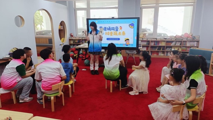 當愛心課堂遇上普通話訓練,一場別開生面的語言成長之旅在福利院溫馨啟航。7月10日,山東職業學院“青春‘語’你同行”社會實踐隊走進山東省濟南市兒童福利院,創新推出“語潤童心”普通話提升計劃,巧妙融合“理論學堂、手工工坊、情景劇場”三位一體模式。孩子們在理論學堂夯實發音基礎,在手工工坊邊做邊說強化詞匯,在情景劇場自信演繹情景主持,全方位體驗表達的樂趣,提升溝通的信心,用標準普通話搭建起通往更廣闊世界的橋梁。