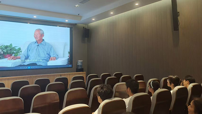 觀影室內,老黨員口述的影像讓焦裕祿形象愈發立體:風雪中走訪的腳印、油燈下治沙的藍圖、病榻上緊握的地圖……“心中裝著全體人民、唯獨沒有他自己”的公仆情懷,透過質樸方言直抵人心。熒幕熄滅,心潮難平。那將“人民”二字刻進骨血、化為生命全部重量的純粹與執著,深深震撼了在場的每一位青年。這跨越時空的對話,讓抽象的信仰變得具體而滾燙,更在他們心中矗立起一座永恒的精神坐標——為民奉獻,方顯共產黨人本色。