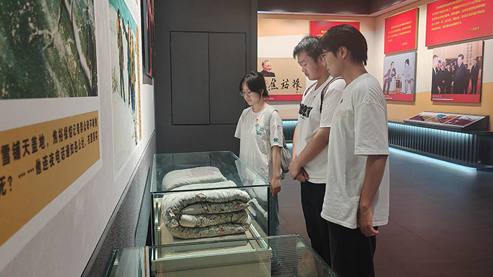 回溯歷史:在歲月印記中感悟精神偉力 踏入莊嚴肅穆的焦裕祿同志紀念館,歷史的厚重感撲面而來。實踐團成員們凝神駐足:展柜中褪色的舊被褥,細密針腳無聲訴說著“艱苦樸素”;講解員口中“雪天送糧”的故事,仿佛勾勒出頂風冒雪的蹣跚背影;“唐灘少年”故居的簡陋陳設,則清晰刻畫出“好男兒要有擔當”的成長印記。每一件舊物,每一幅影像,都是叩問初心的無聲之問。