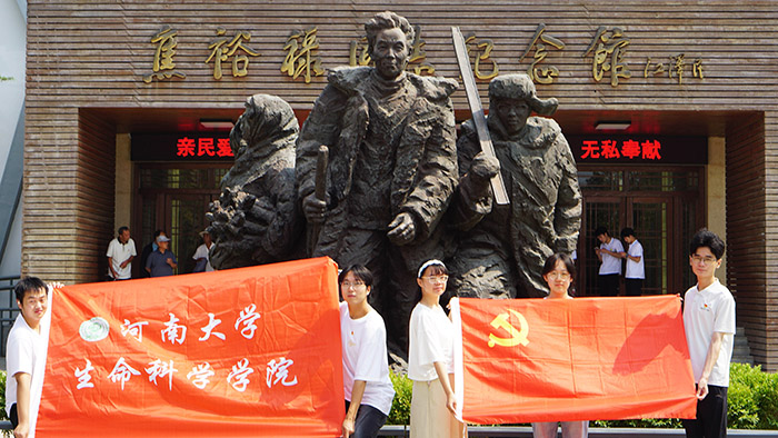 桐影婆娑,誓言鏗鏘。此次蘭考之行,不僅是一次穿越時空的精神對話,更是一場深刻的思想淬煉與專業啟迪。在焦裕祿同志紀念館的歷史回響中,在黨旗下的莊嚴宣誓里,在焦桐樹下的深情誦讀間,青年學子們觸摸到了“親民愛民、艱苦奮斗、科學求實、迎難而上、無私奉獻”的焦裕祿精神最滾燙的脈搏。他們以專業視角解讀“焦桐”背后的生態智慧,用“黨建+生命科學”的創新思維探索紅色精神傳承的新路徑,讓信仰的種子在紅色沃土中汲取養分,在專業實踐中萌發新芽。此次沉浸式的紅色旅程,已然將崇高的理想與肩頭的責任深深烙印在每一位青年學子的心中。未來,他們將懷揣這份源自蘭考的信念與擔當,以生命科學為筆,在服務人民、建設祖國的廣闊天地里,續寫新時代的“焦桐”故事,讓不朽的精神在青春實踐中根深葉茂、生生不息!