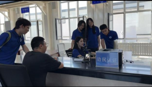 在邊貿互市區,經過口岸工作人員指導,實踐團擔任“1日邊貿互市推介官”,為消費者詳細介紹特色商品、協助邊民完成認證與交易,親身體驗共建“一帶一路”倡議和東北振興戰略的蓬勃脈動。那一刻,實踐團成員不僅是旁觀者,更是參與者,用青春的筆觸描繪著邊境貿易的生動篇章。