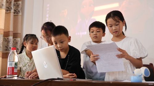 圖為支教班小朋友進行普通話配音譚皓澤攝
