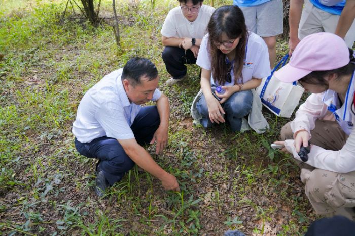 而在黃精種植基地,大家不僅見識了林下仿野生種植的生態智慧,更深切理解了“道地藥材”的珍貴含義。董睿老師告訴同學們,道地藥材是經過長期醫療實踐證明,質量優良、療效顯著的中藥材。九華黃精能成為道地藥材,與其生長的環境等諸多因素密切相關。林間濕潤的空氣里,黃精在自然庇佑下緩慢積蓄藥力,同學們卷起衣袖參與除草時,指尖能觸到葉片上細密的絨毛,汗水順著臉頰滑進衣領,卻沒人停下動作——當看到自己清理過的地塊里,黃精葉片在風里輕輕舒展時,實踐團成員王清秀說:“突然懂了“農耕”二字的分量,這不是課本里抽象的‘生態種植’,是泥土沾在褲腳的真實,是每棵苗都要被認真對待的敬畏。”