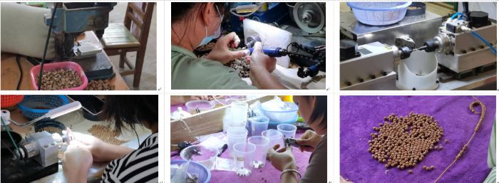 核雕六個(gè)流程(穿孔、打磨、塑型、拋光、測(cè)距挑選和串珠 從左至右 從上至下) 漆佳螢 攝