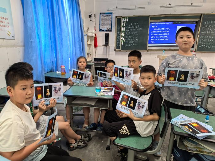 7月14日至15日上午,隊(duì)員董璇采用通俗講解、互動(dòng)問(wèn)答等形式進(jìn)行了思政宣講,將紅色歷史與“太空種菜”“碳中和”等時(shí)政內(nèi)容相結(jié)合,并借助繪畫讓學(xué)生們加深理解,引導(dǎo)他們從小培養(yǎng)家國(guó)情懷。思政宣講結(jié)束后,在7月15日至17日下午,隊(duì)員們又帶領(lǐng)學(xué)生做起“大象牙膏”“紫甘藍(lán)溶液變色”等化學(xué)小實(shí)驗(yàn),并結(jié)合專業(yè)知識(shí)為學(xué)生答疑解惑,以此激發(fā)他們對(duì)化學(xué)的興趣和探索欲望。