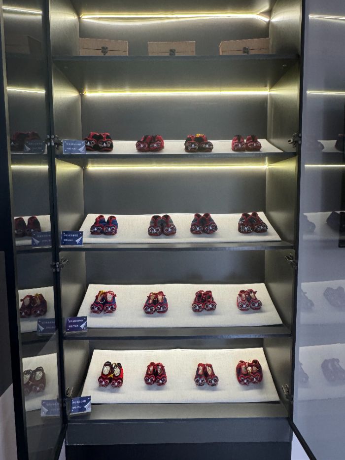 步入東海鎮豐利村,在駐村書記周銘銘的帶領下,成員一路往深處走,探尋非遺虎頭鞋背后的故事。走進虎頭鞋文化展示館,一件件手工藝品透著濃郁鄉土氣息,一針一線下承載著民族文化,讓隊員們直觀感受到傳統技藝的溫度。實踐中,成員們了解到虎頭鞋雖受喜愛,卻面臨傳承困境。直到去年,經婦聯牽線,“章鎮布藝”團隊帶虎頭鞋參展獲廣泛認可。周書記在訪談中談及規劃:“要激活‘非遺+電商’平臺,讓‘指尖技藝’轉變為‘指尖經濟’。”活動尾聲,隊員們觀摩展品,學編虎頭手鏈,在親身體驗中深化對非遺保護的理解。