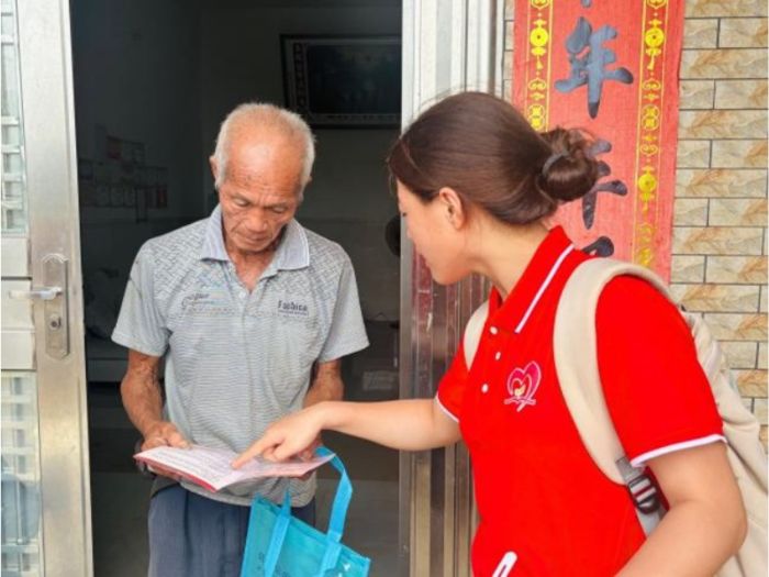 【政策宣傳進鄉村,方言溝通暖人心】 走訪發現,兩村以留守老人與兒童為主,雷州話是日常交流的“通行證”。團隊中精通雷州話的隊員立刻化身“政策翻譯官”,用帶著鄉音的家常話打開話匣:“阿婆,您孫仔要是考上大學,學費不夠可以找國家借錢,不要利息的……”他們圍繞國家助學貸款的申請額度、還款期限,國家助學金的發放標準等細則,結合村民關心的“讀書花錢多”“手續太復雜”等疑慮,用方言和通俗易懂的話語逐一拆解政策,確保每個有需求的家庭都能吃透政策、用對政策。