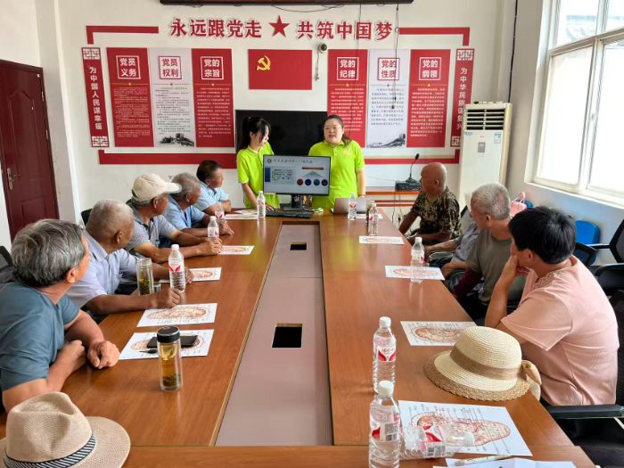 老年人常見病健康講座聚焦高血壓、糖尿病等高發疾病,同時融入了夏季防暑知識科普,采用“知識講解+個性化答疑”的模式,幫助老年人樹立科學的健康管理觀念,降低疾病風險。志愿者結合西仲都村老年健康數據,以典型病例解析常見病初期癥狀與潛在風險,增強疾病識別能力;針對飲食調控等核心需求,提煉通俗易記的健康口訣,強化日常防護的可操作性。答疑環節中,長者們圍繞“糖尿病患者能否喝綠豆湯”“空調溫度設多少合適”等問題積極提問,志愿者逐一給予專業解答,現場互動頻繁、反饋熱烈。