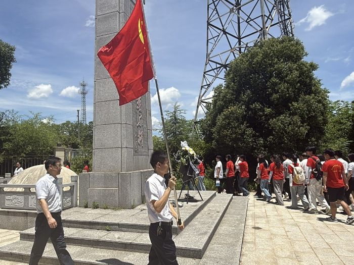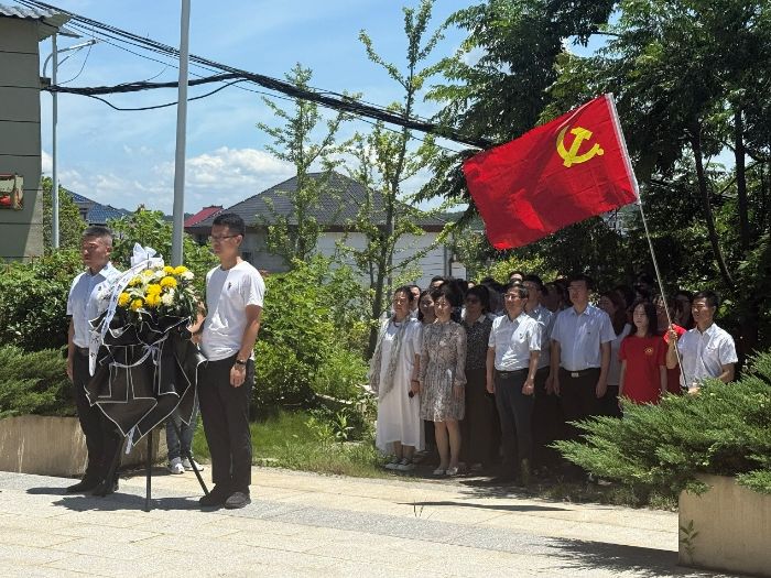 臨床醫學院領導班子與服務隊先赴大港鎮烈士陵園,在紀念碑前整齊列隊、齊唱國歌,莊重敬獻花圈。禮畢后,眾人懷著崇敬緩步繞碑,肅穆氛圍中滿溢對先烈的緬懷與敬意。隨后,服務隊走訪黨齡50年以上的老黨員,聆聽奮斗故事,從中汲取進取力量。
