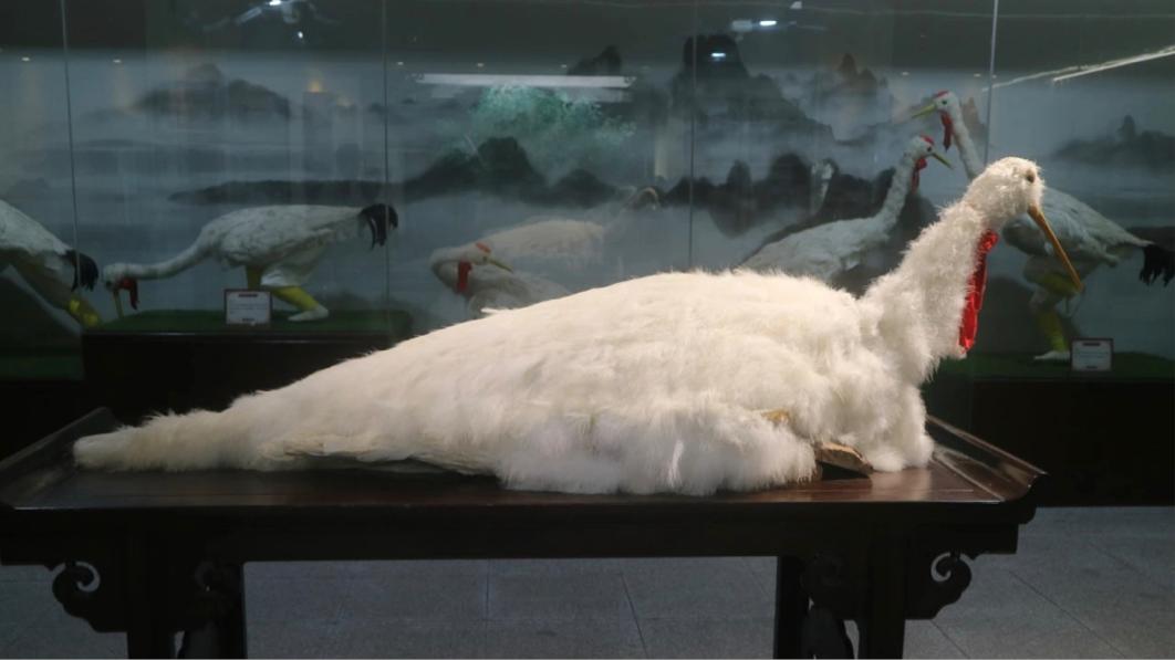 館內珍藏的鶴舞道具與資料,系統展現了這一傳統藝術的發展脈絡。湯福文老人詳細講解了鶴舞的起源、儀式流程及文化寓意,介紹了“年三十制新鶴、開光念祝詞、拜年送祝福、舊鶴衣“羽化”等傳統習俗。三灶鶴舞以白鶴為象征,寄托著百姓對長壽、吉祥的美好愿景,其傳承不僅是技藝的延續,更是文化精神的傳遞,讓我們深切感受到傳統藝術在當代的生命力。