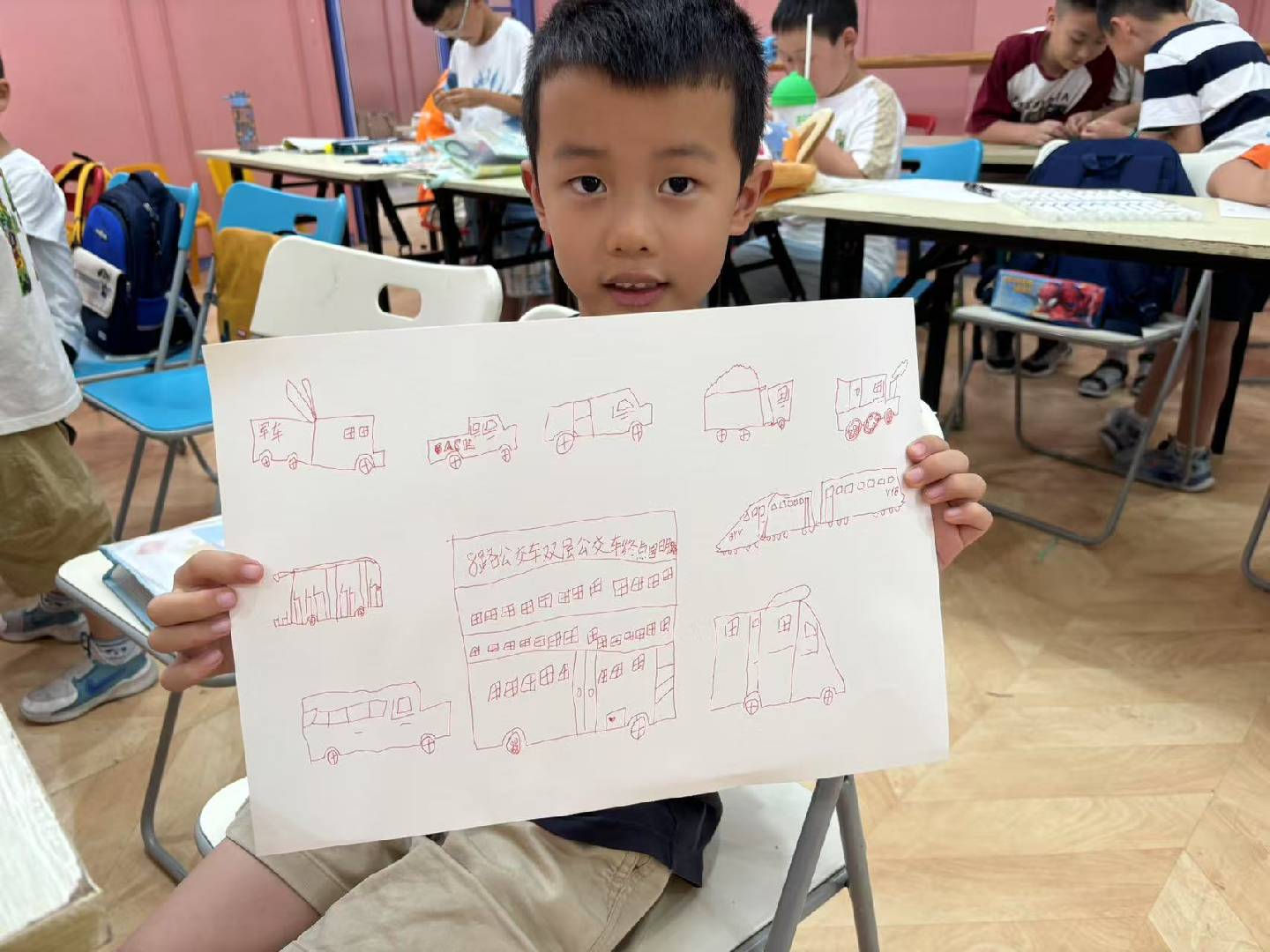 陪伴式成長書寫雙向奔赴針對內向學生小宇的特殊情況,志愿者林張鵬發現他總在繪畫課上默默涂抹,便以繪畫為切入點,從簡單的線條勾勒到復雜的色彩搭配,一步步引導他創作。他們一起觀察生活中不同的小汽車,勾勒車輛輪廓,小宇漸漸愿意在繪畫時與李航交流想法。在結營儀式上,曾拒絕交流的小宇主動拿著自己畫的《生活中的車輛》上臺,講解畫中每個汽車的模樣,其成長蛻變讓志愿者熱淚盈眶。課間開展的 "你畫我猜"" 擊鼓傳花 " 等互動游戲,更成為拉近心靈距離的紐帶。