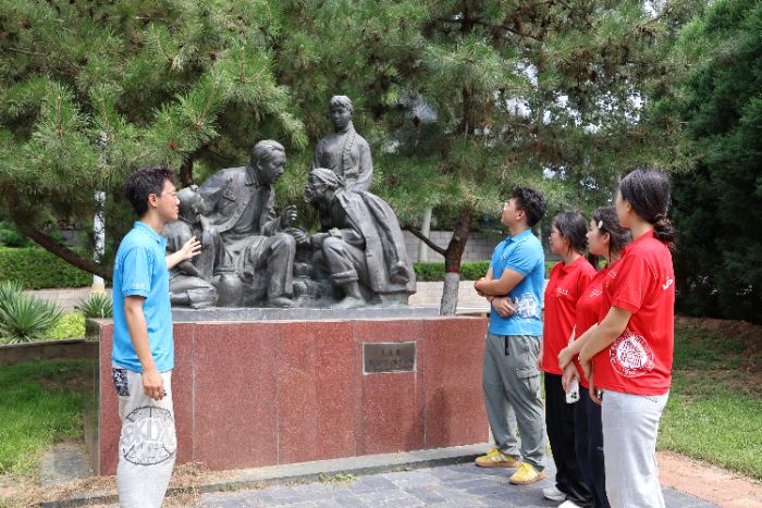 初遇西柏坡:紅色土壤中的厚重歷史 新中國從這里走來,趕考路從這里啟程!75年前,毛澤東同志把共產黨人奪取革命勝利后的考驗比喻為“進京趕考”,開創了社會主義的偉大事業。作為“解放全中國的最后一個農村指揮所”,西柏坡是中共中央“進京趕考”的起點,象征著中國共產黨走向新的勝利。實踐團隊抵達西柏坡后,首先走進了莊嚴肅穆的趕考廣場。刻有“革命圣地西柏坡”的紀念碑巍然矗立,向來來往往的人群展示著曾經的光輝歷史,目光如炬的雕塑將那支從西柏坡出發的隊伍永遠定格在“絕不當李自成”的誓言里。