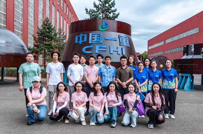 隨后,實踐團隊來到習總書記在中國一重的重要一站,深入重型機械生產車間,在轟鳴的機床與精密的裝配線間,三方成員深刻觸摸到“工匠精神”的千鈞分量。從大型工程機械的模塊化設計以適應山區道路運輸,到農用機械與高標準農田建設的參數匹配,每一個細節的打磨都凝聚著“追求極致、久久為功”的匠心。此次調研讓三方成員清晰了“大國重器”與“鄉村振興”的深層聯動邏輯:在黨建聯建的引領下,以匠心精神淬煉科技精度,以國際視野拓展應用邊界,將“大國重器”的硬核實力轉化為鄉村基建的“升級動能”,方能持續提升“基建興村”的質量指標與效益指數,讓科技強國的成果真正扎根鄉土、惠及民生。