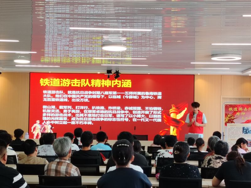 活動現場,服務團成員精心準備了豐富的內容。他們借助制作精美的PPT,聲情并茂地講述“飛虎夜襲”“智取火車”等鐵道游擊隊的經典戰役。那一段段驚心動魄的戰斗歷程,仿佛將大家帶回了革命先輩們為了民族解放奮勇拼搏的歲月,帶領孩子們真切重溫了革命先輩的熱血擔當與無畏精神。