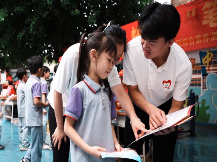 盛夏七月,龍川縣老隆鎮(zhèn)維嘉學(xué)校的校園里暑氣蒸騰,卻擋不住孩子們的熱情。作為深圳信息職業(yè)技術(shù)大學(xué)紅旗飄揚(yáng)隊(duì)的隊(duì)員帶著國家資助政策的"及時(shí)雨",在這里開展了一場(chǎng)別開生面的宣講活動(dòng)。從趣味問答到百米長卷,從班級(jí)互動(dòng)到攤位宣講,隊(duì)員們用青春力量架起政策與童心的橋梁,讓"不讓一個(gè)孩子因貧失學(xué)"的承諾化作看得見、摸得著的溫暖。
