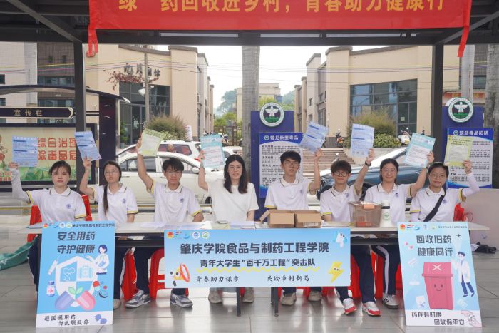 秉承著健康中國理念,實踐團以“健康優先”為核心,7月16日上午在祿步鎮文化廣場設立“綠藥回收進鄉村,青春助力健康行”專項服務攤位,農村科技特派員吳秀蘭副教授與學院團委副書記趙丹丹現場指導,制藥專業的同學通過派發宣傳手冊和互動講解,向村民闡釋藥品的分類知識及回收方法。本次活動采用“定點回收+流動宣傳”創新模式:設置藥品回收箱科學存放過期及臨期藥品,同時入戶發放200余份宣傳資料、開展問卷調研,并用“以藥換藥”的方式激勵群眾,向參與回收藥品的居民贈送常用藥及涼茶作為暖心回饋。雖然七月的廣東驕陽似火,但通過隊員們一天的努力,本次活動共回收過期藥品30余盒,收集有效問卷151份。所有回收藥品已移交食品與制藥工程學院朱峻霄老師團隊進行專業處理,用過期連花清瘟膠囊研究其環境溶出行為并進行生態風險評估,既消除了藥品安全隱患,又促進了居民環保意識的提升。藥品回收宣傳既是“百千萬工程”的基層實踐,也彰顯了高校服務鄉村的擔當,更推動了健康中國理念在祿步鎮的普及。實踐團以青春助力健康中國,如今這一行動已在當地扎根,想必未來也將持續守護群眾健康。