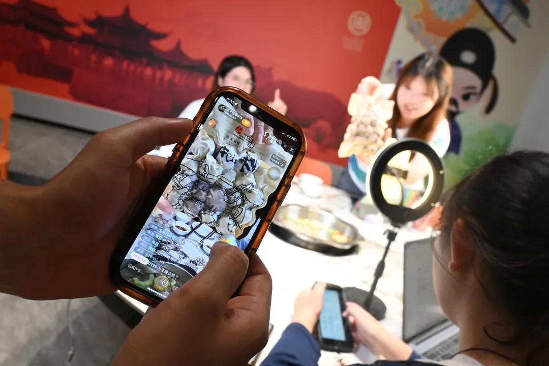 團隊提前抵達圍廬火鍋店直播區域進行全面籌備。優化背景板布局,突出潮州文化符號;精準調試設備,呈現非遺技藝細節。最終確定以“捶打演示-工藝解讀-文化故事”為核心脈絡的三維直播矩陣,增強非遺文化展示的層次感與吸引力。用心布景、精準把控,借助直播形式,為實現系統展示潮州文化奠定基礎。
