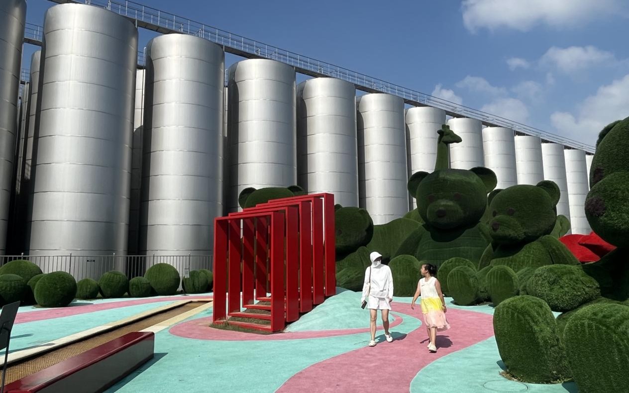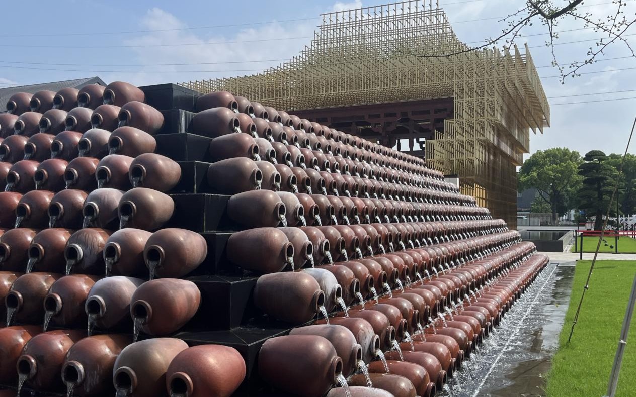 沙洲優(yōu)黃文化園酒壇疊成的水幕以及氣勢(shì)恢宏的大門(mén) 趙梓騰供圖 融合民國(guó)風(fēng)情與江南韻味的建筑群中,工人們正遵循著百年傳承的節(jié)氣釀酒法則——農(nóng)歷七月制酒藥、九月制麥曲、小雪制酵母、大雪投料發(fā)酵。