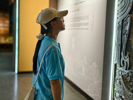 博物館溯源構(gòu)建文化坐標(biāo) 博物館內(nèi),團(tuán)隊(duì)依次探訪"商文化展廳"等六大主題展區(qū),深度感知中原文明的厚重底蘊(yùn)。最令人動(dòng)容的是"漢代畫像石展廳"。隊(duì)員們細(xì)細(xì)觀察石刻上的場(chǎng)景,當(dāng)看到這些石刻是古人'視死如生'的陪葬品時(shí),幾名隊(duì)員默默向石刻行注目禮。
