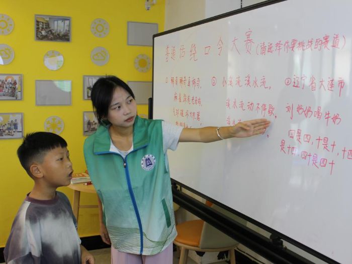 團(tuán)隊(duì)成員帶領(lǐng)孩子開(kāi)展普通話(huà)繞口令大賽。肖睿攝
