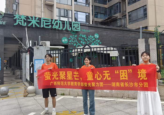 2025年7月14日,廣西師范大學(xué)教育學(xué)部螢光聚力團(tuán)長沙分團(tuán)攜“螢光聚星芒,童心無困境”主題行動,走進(jìn)長沙市雨花區(qū)梵米尼幼兒園開展暑期“三下鄉(xiāng)”實(shí)踐。本次實(shí)踐由廣西師大教育學(xué)部教育學(xué)研究生牽頭,其他成員來自東北師范大學(xué)、湖南師范大學(xué),四名專業(yè)志愿者以精準(zhǔn)服務(wù)為核心,為3-6歲困境兒童量身打造情緒能力支持方案,用教育實(shí)踐響應(yīng)國家兒童心理健康政策號召。
