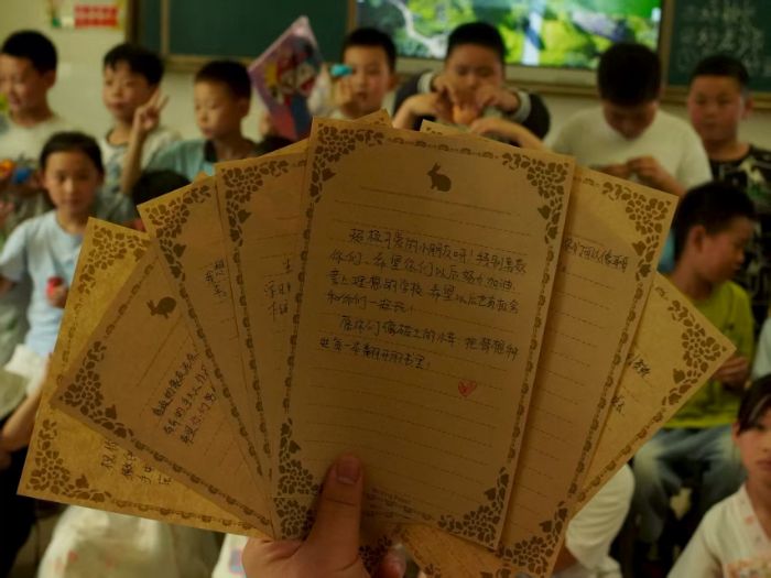 圖為志愿者給孩子們的話