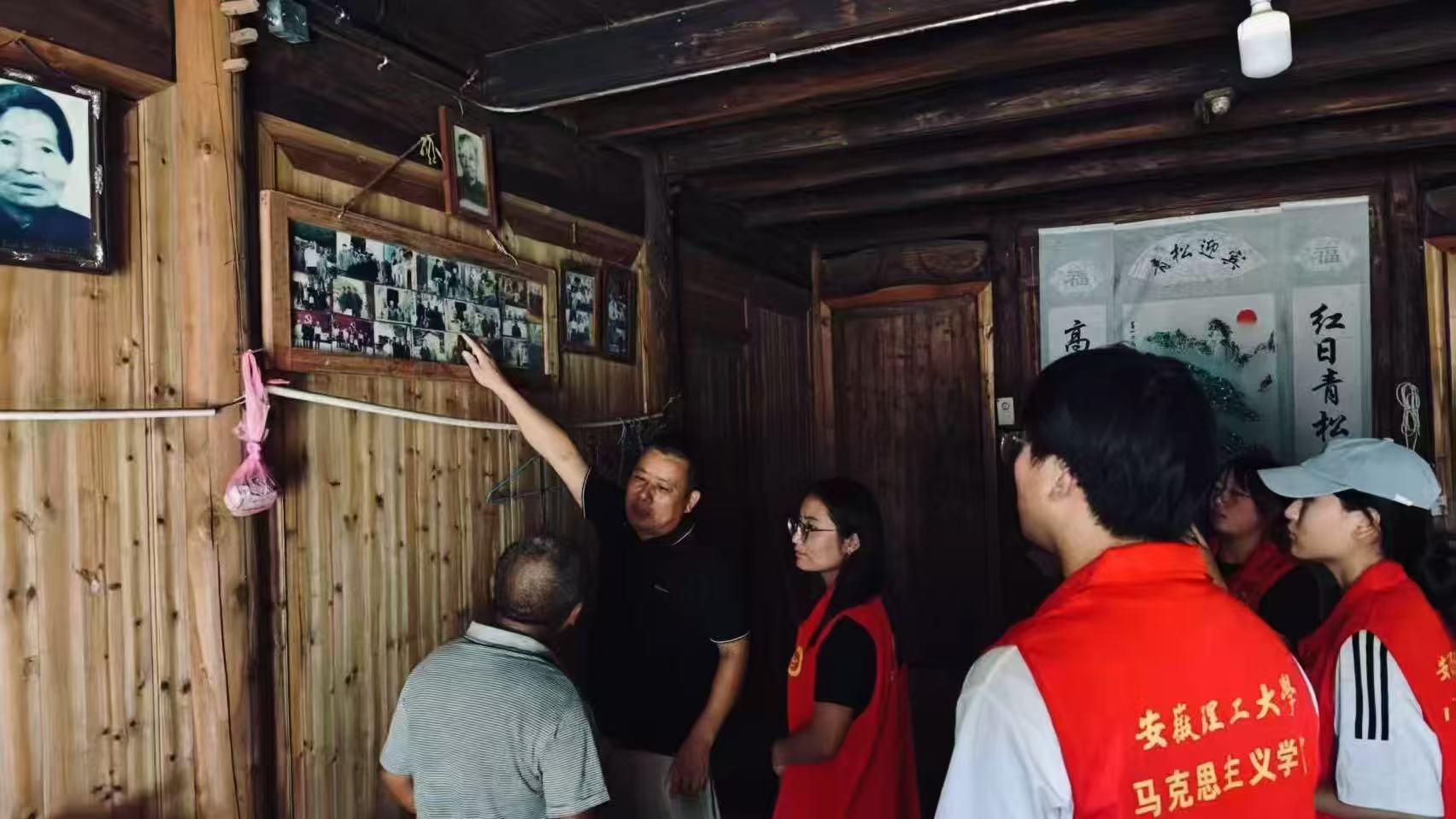 8月8日上午,隊員們走進新四軍司令部舊址,五合村胡書記的講解讓歷史變得鮮活:“這里是當年紅軍的總部,艱苦歲月里,家家戶戶都住過紅軍戰士,門板當床、稻草為被,軍民魚水情就藏在這些老故事里。”現在舊址門口的老槐樹依舊蔥郁,仿佛仍在訴說著紅軍浴血奮戰、守護家園的崢嶸歲月。經過百年滄桑,楊灘人民始終堅守初心,黨群一心,守護綠色家園。隊員們在舊址內駐足凝視,從泛黃的史料、斑駁的墻痕中,體會到紅色政權的來之不易,更深刻理解從軍民同心到黨群一心的紅色傳承和發展底色。